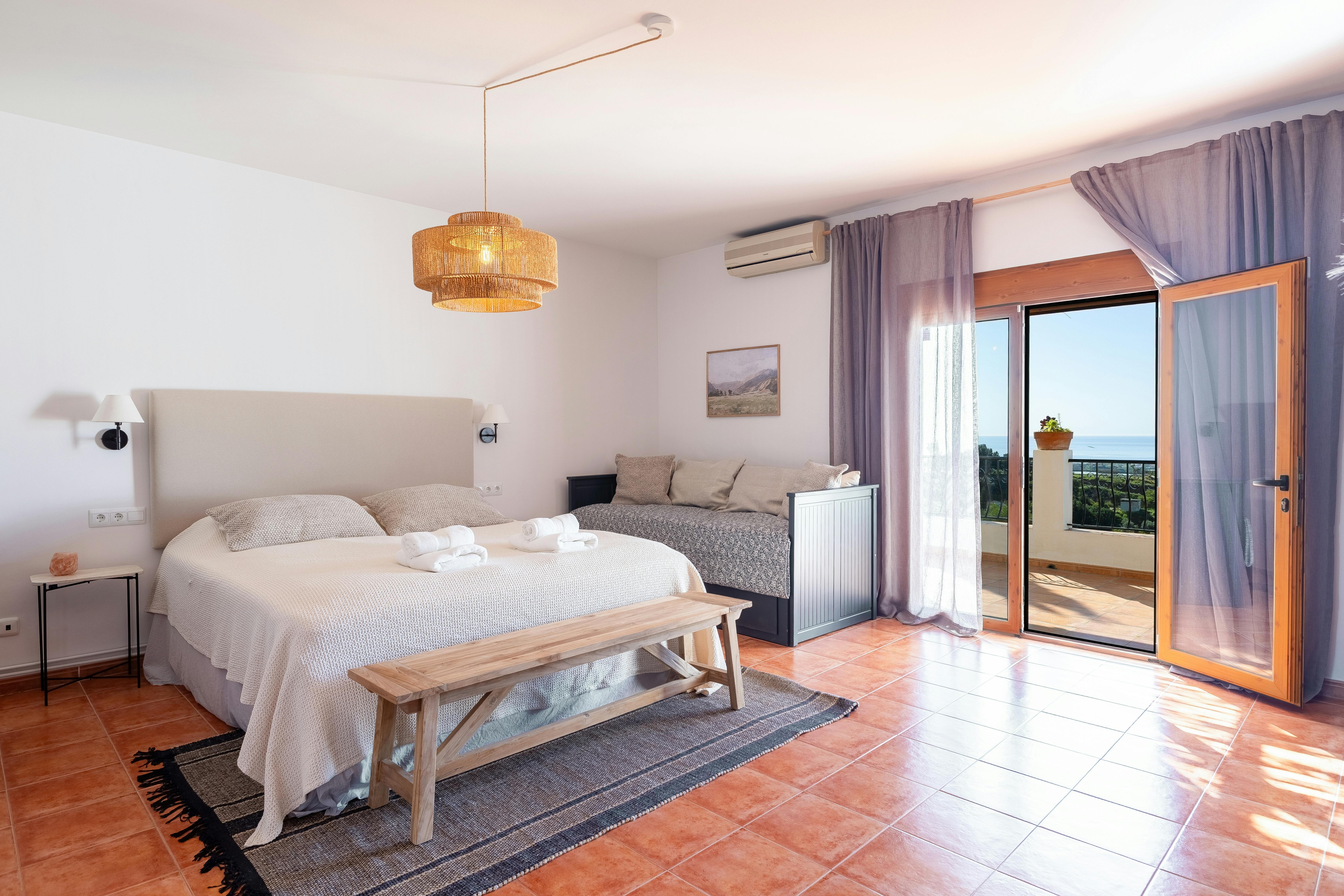 The rooms at Finca Sol y Cielo offer a cozy, calm and bright atmosphere. Each room has its en-suite bathroom, air conditioning, Wi-Fi connection, hairdryer and its own entrance for greater privacy. A delicious breakfast is included and will be served in the communal area. Enjoy the wonderful sea views and soak up the sun just outside your room (private balcony with seating facilities) or in the generous pool area with comfortable sun loungers. You find tea and coffee facilities and a little desk in your room. In the communal outdoor kitchen you find an honesty bar with a range of drinks and snacks at reasonable prices. If desired, you are free to prepare your own food in the outside area (12 a.m. till 10 p.m.) or enjoy one of the restaurants in the nearer or greater area. We are looking forward to welcoming you soon at Finca Sol y Cielo!